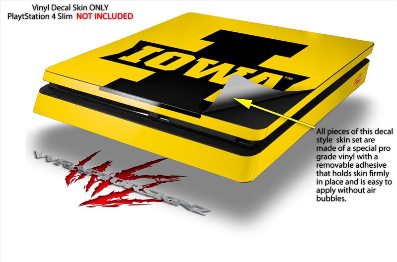 Vinyl Decal Skin Wrap compatible with Sony PlayStation 4 Slim Console Iowa Hawkeyes 04 Black on Gold (PS4 NOT INCLUDED)
