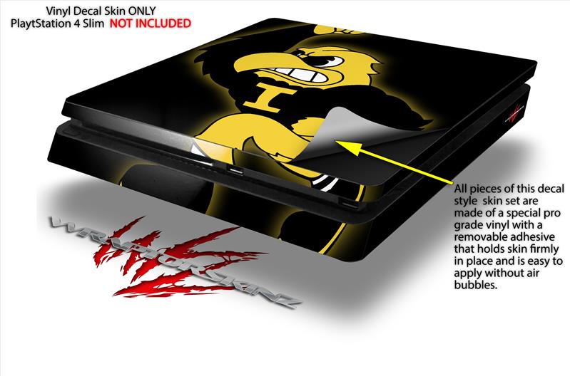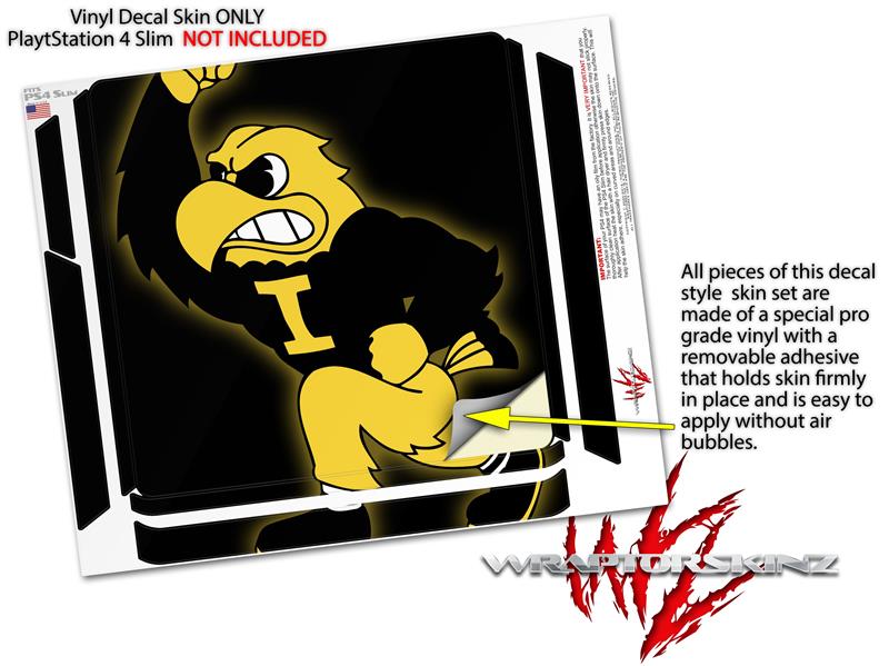 Vinyl Decal Skin Wrap compatible with Sony PlayStation 4 Slim Console Iowa Hawkeyes Herky on Black (PS4 NOT INCLUDED)