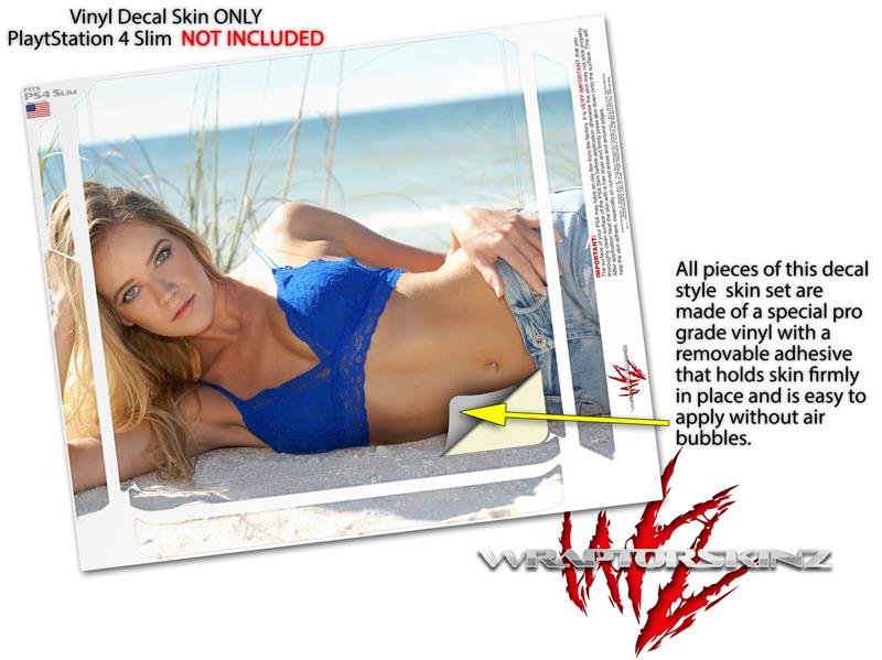 Vinyl Decal Skin Wrap compatible with Sony PlayStation 4 Slim Console Kayla DeLancey Beach Denim 23 (PS4 NOT INCLUDED)