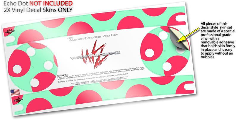 Skin Wrap Decal Set 2 Pack for Amazon Echo Dot 2 - Kearas Polka Dots Pink And Blue (2nd Generation ONLY - Echo NOT INCLUDED)