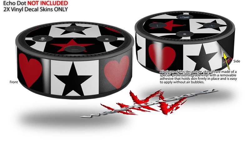 Skin Wrap Decal Set 2 Pack for Amazon Echo Dot 2 - Hearts and Stars Red (2nd Generation ONLY - Echo NOT INCLUDED)