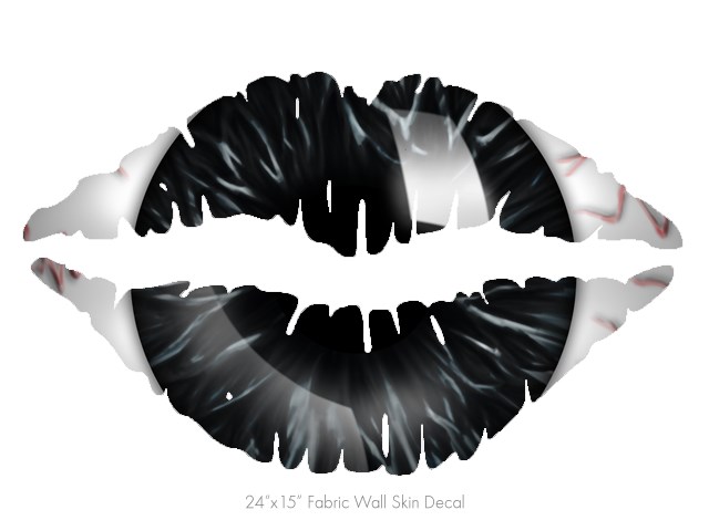 Eyeball Black - Kissing Lips Fabric Wall Skin Decal measures 24x15 inches