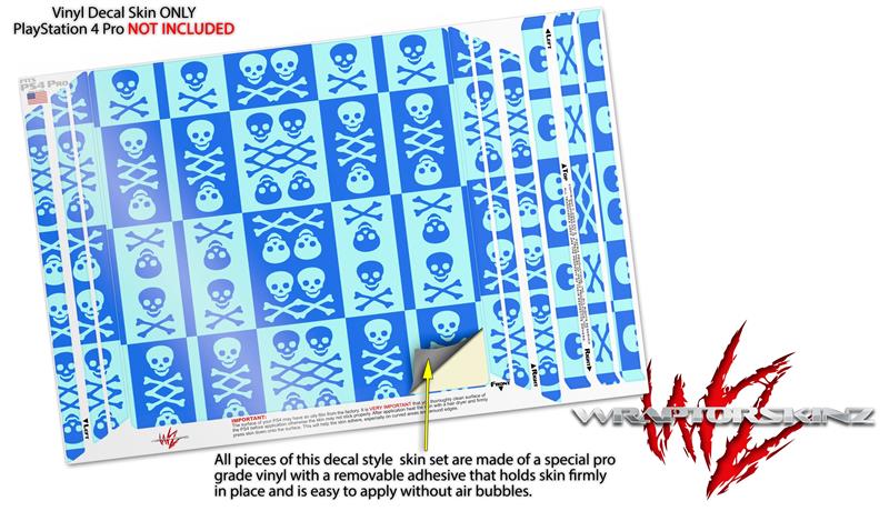 Vinyl Decal Skin Wrap compatible with Sony PlayStation 4 Pro Console Skull And Crossbones Pattern Blue (PS4 NOT INCLUDED)