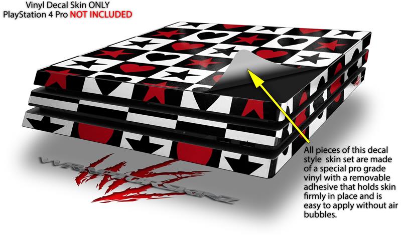 Vinyl Decal Skin Wrap compatible with Sony PlayStation 4 Pro Console Hearts and Stars Red (PS4 NOT INCLUDED)