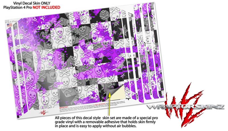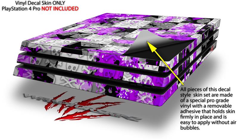 Vinyl Decal Skin Wrap compatible with Sony PlayStation 4 Pro Console Purple Checker Skull Splatter (PS4 NOT INCLUDED)