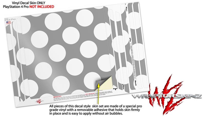 Vinyl Decal Skin Wrap compatible with Sony PlayStation 4 Pro Console Kearas Polka Dots Whtie On Gray (PS4 NOT INCLUDED)
