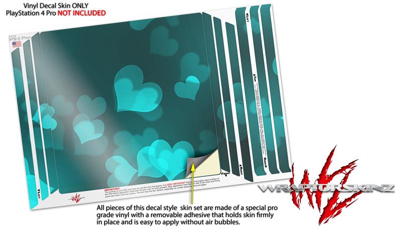 Vinyl Decal Skin Wrap compatible with Sony PlayStation 4 Pro Console Bokeh Hearts Neon Teal (PS4 NOT INCLUDED)