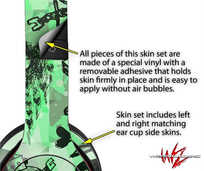 WraptorSkinz Skin Decal Wrap compatible with Beats Solo 2 and Solo 3 Wireless Headphones Scene Kid Sketches Green (HEADPHONES NOT INCLUDED)