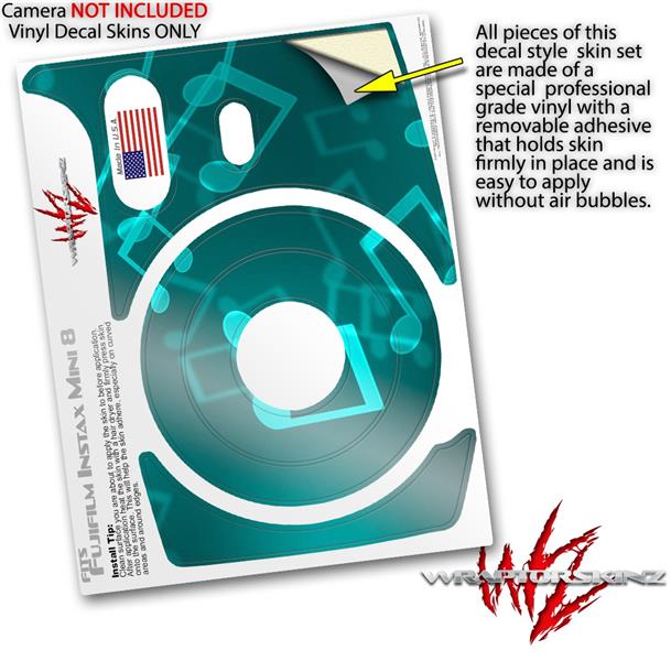 WraptorSkinz Skin Decal Wrap compatible with Fujifilm Mini 8 Camera Bokeh Music Neon Teal (CAMERA NOT INCLUDED)