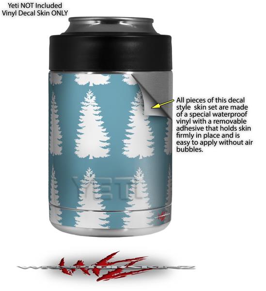 Skin Decal Wrap for Yeti Colster, Ozark Trail and RTIC Can Coolers - Winter Trees Blue (COOLER NOT INCLUDED)