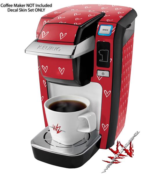 Decal Style Vinyl Skin compatible with Keurig K10 / K15 Mini Plus Coffee Makers Hearts Red On White (KEURIG NOT INCLUDED)
