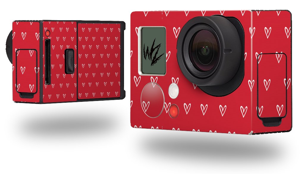 Hearts Red On White - Decal Style Skin fits GoPro Hero 3+ Camera (GOPRO NOT INCLUDED)