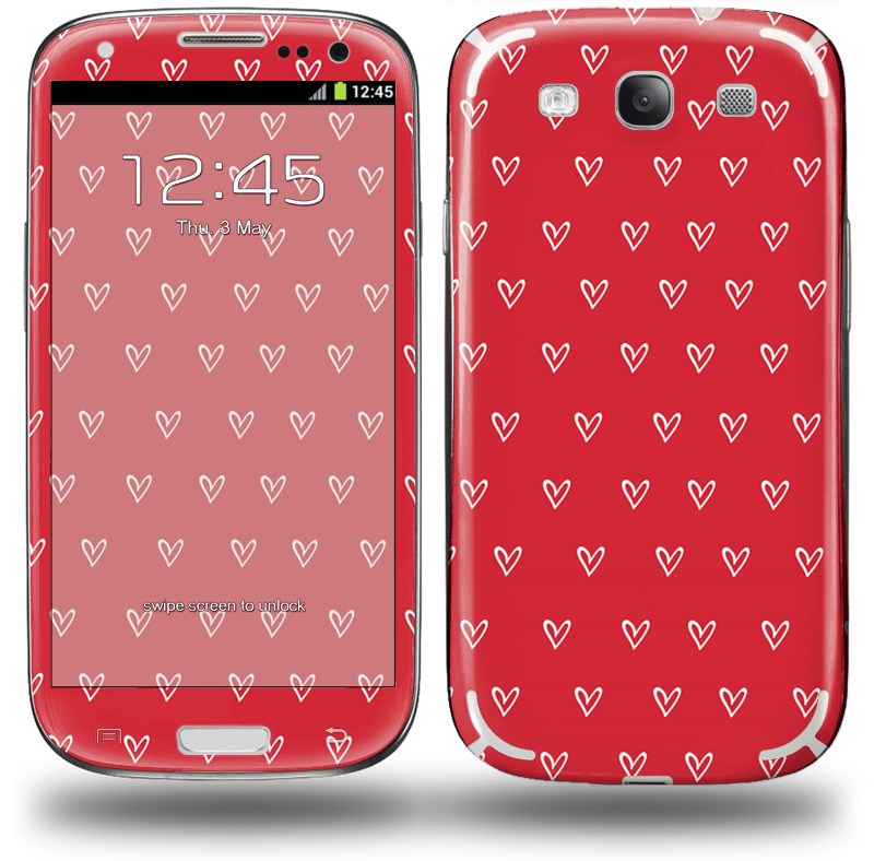Hearts Red On White - Decal Style Skin (fits Samsung Galaxy S III S3)