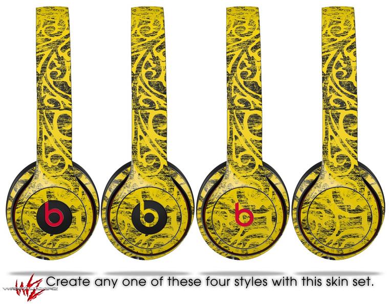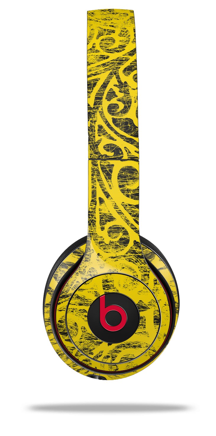 WraptorSkinz Skin Decal Wrap compatible with Beats Solo 2 and Solo 3 Wireless Headphones Folder Doodles Yellow (HEADPHONES NOT INCLUDED)