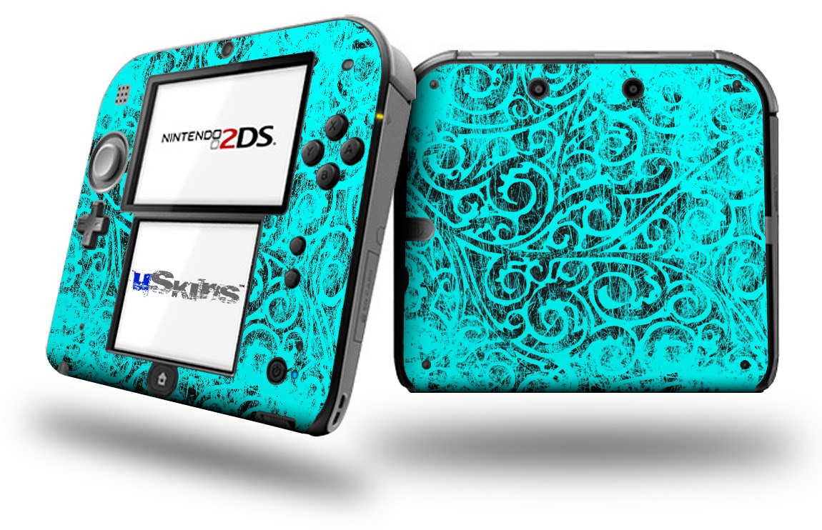 Folder Doodles Neon Teal - Decal Style Vinyl Skin fits Nintendo 2DS - 2DS NOT INCLUDED