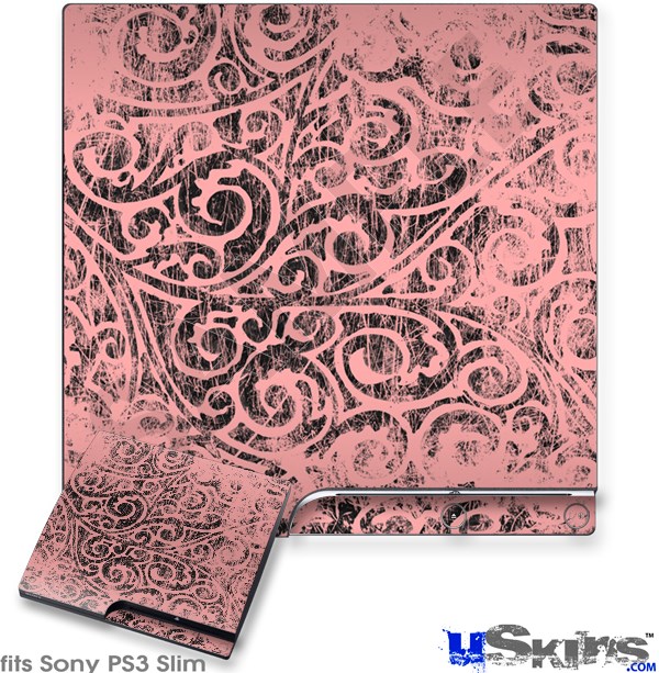 Decal Skin compatible with Sony PS3 Slim Folder Doodles Pink