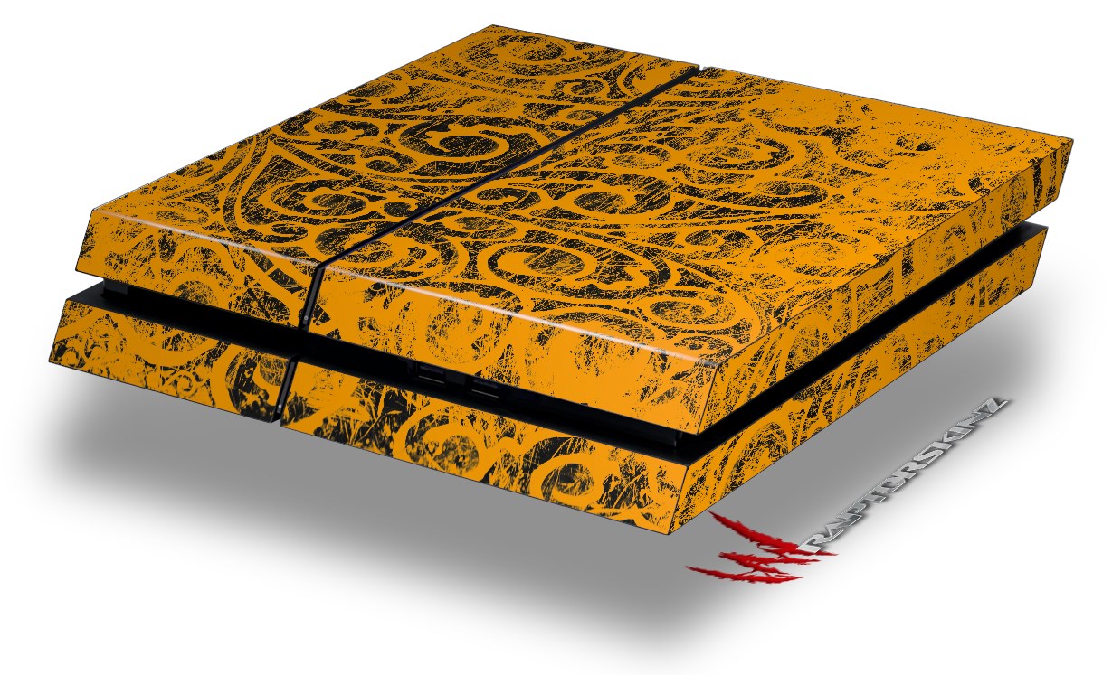 Vinyl Decal Skin Wrap compatible with Sony PlayStation 4 Original Console Folder Doodles Orange (PS4 NOT INCLUDED)