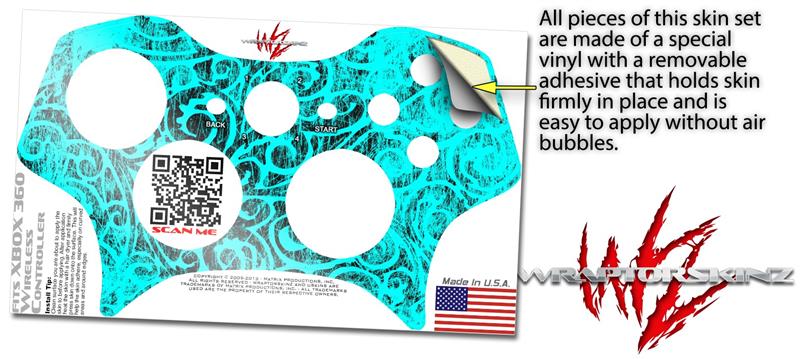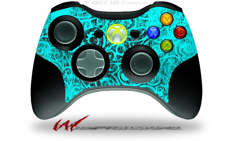 XBOX 360 Wireless Controller Decal Style Skin - Folder Doodles Neon Teal (CONTROLLER NOT INCLUDED)