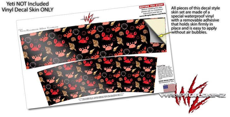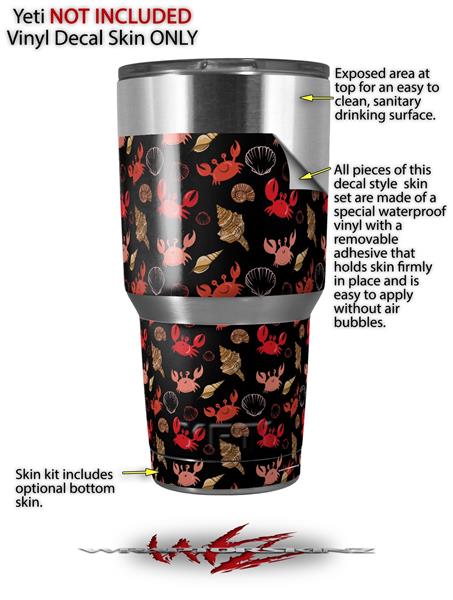 Skin Decal Wrap for Yeti Tumbler Rambler 30 oz Crabs and Shells Black (TUMBLER NOT INCLUDED)