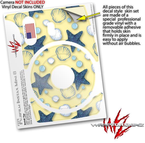 WraptorSkinz Skin Decal Wrap compatible with Fujifilm Mini 8 Camera Starfish and Sea Shells Yellow Sunshine (CAMERA NOT INCLUDED)