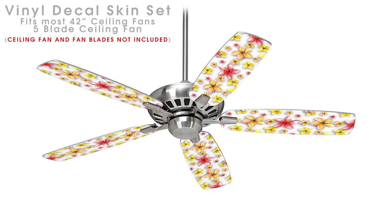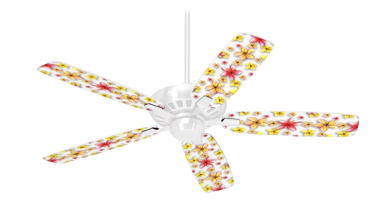 Beach Flowers White - Ceiling Fan Skin Kit fits most 42 inch fans (FAN and BLADES SOLD SEPARATELY)