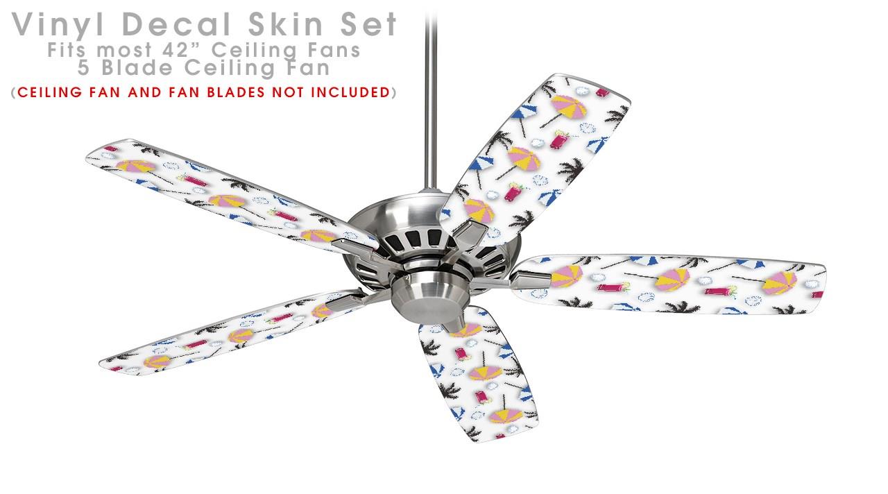 Beach Party Umbrellas White - Ceiling Fan Skin Kit fits most 42 inch fans (FAN and BLADES SOLD SEPARATELY)