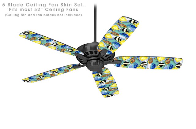 Tropical Fish 01 Seafoam Green - Ceiling Fan Skin Kit fits most 52 inch fans (FAN and BLADES SOLD SEPARATELY)