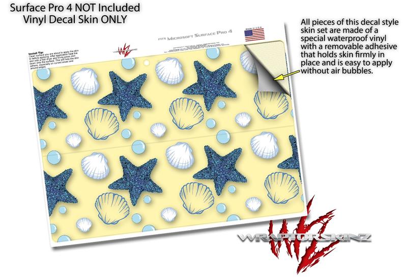Starfish and Sea Shells Yellow Sunshine - Decal Style Vinyl Skin fits Microsoft Surface Pro 4 (SURFACE NOT INCLUDED)