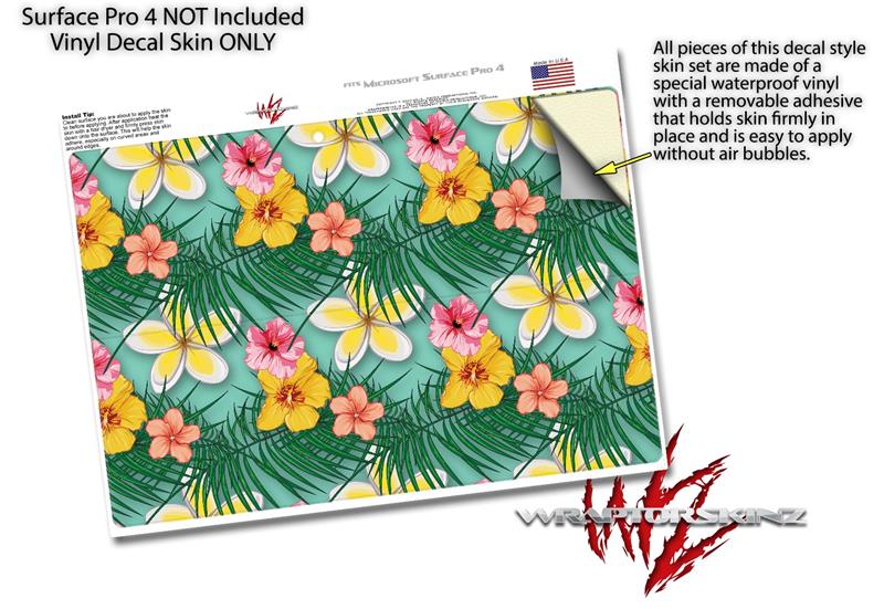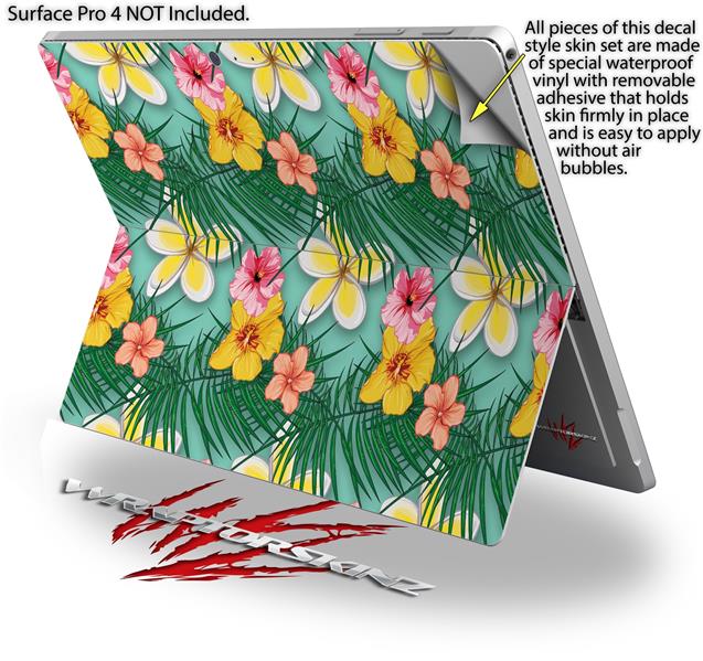 Beach Flowers 02 Seafoam Green - Decal Style Vinyl Skin fits Microsoft Surface Pro 4 (SURFACE NOT INCLUDED)