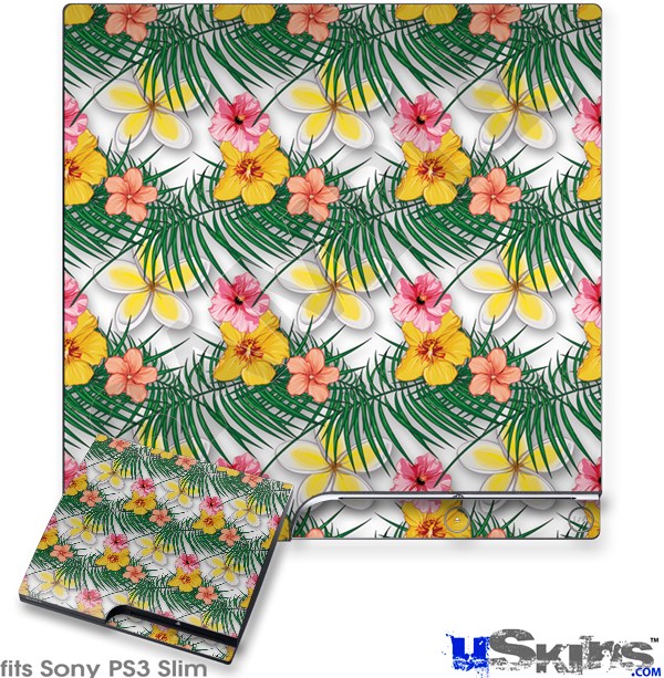 Decal Skin compatible with Sony PS3 Slim Beach Flowers 02 White