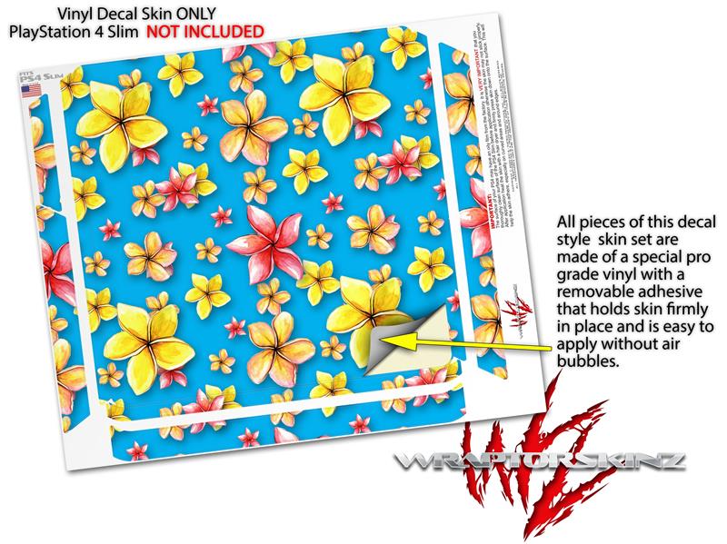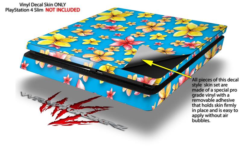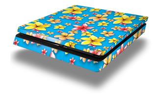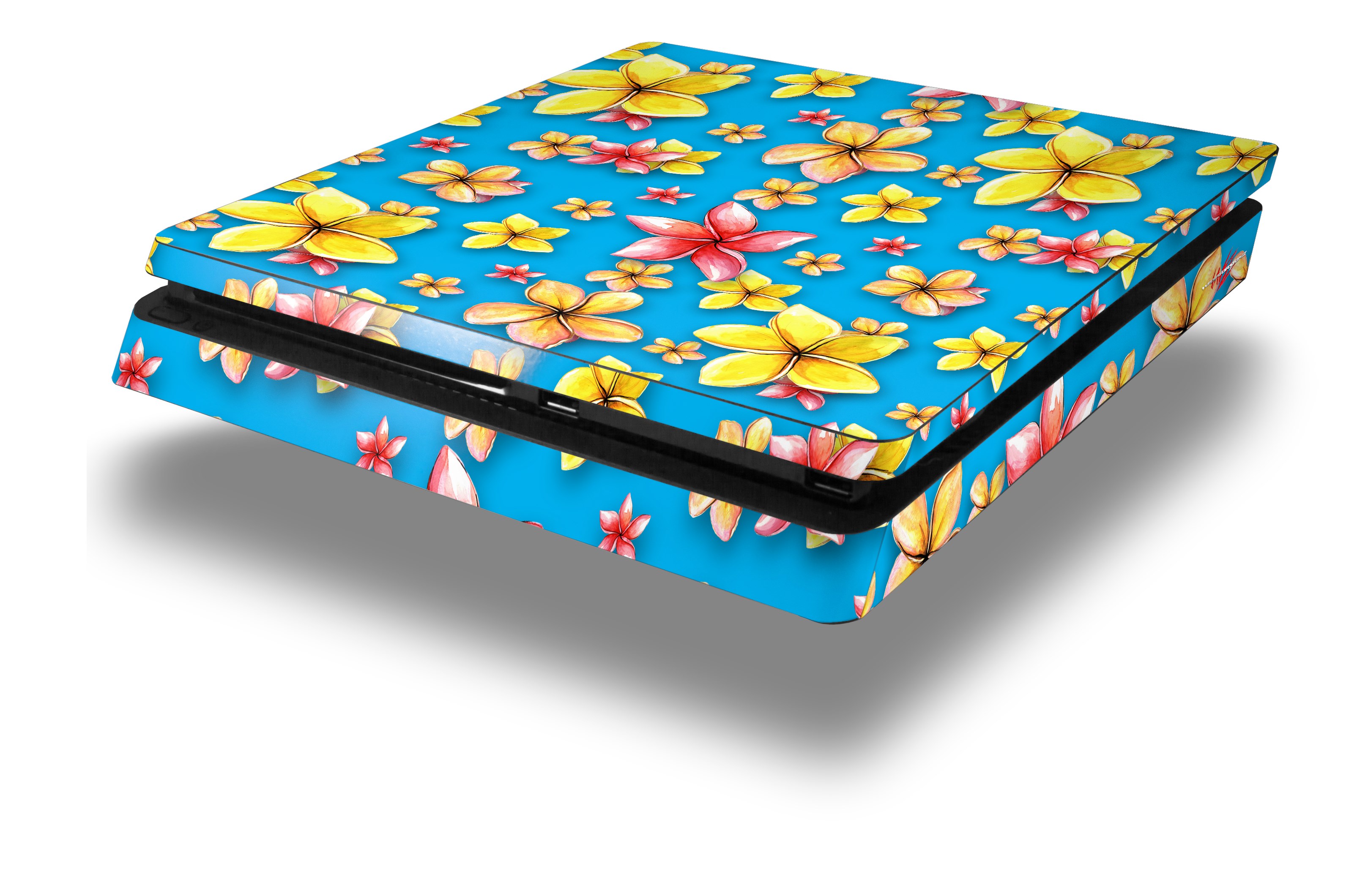 Vinyl Decal Skin Wrap compatible with Sony PlayStation 4 Slim Console Beach Flowers Blue Medium (PS4 NOT INCLUDED)