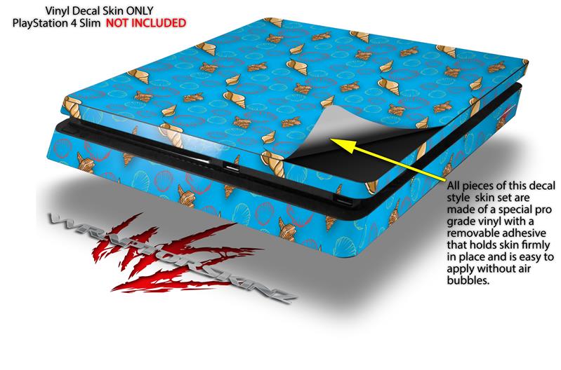 Vinyl Decal Skin Wrap compatible with Sony PlayStation 4 Slim Console Sea Shells 02 Blue Medium (PS4 NOT INCLUDED)