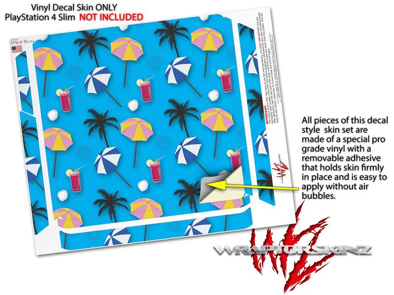 Vinyl Decal Skin Wrap compatible with Sony PlayStation 4 Slim Console Beach Party Umbrellas Blue Medium (PS4 NOT INCLUDED)