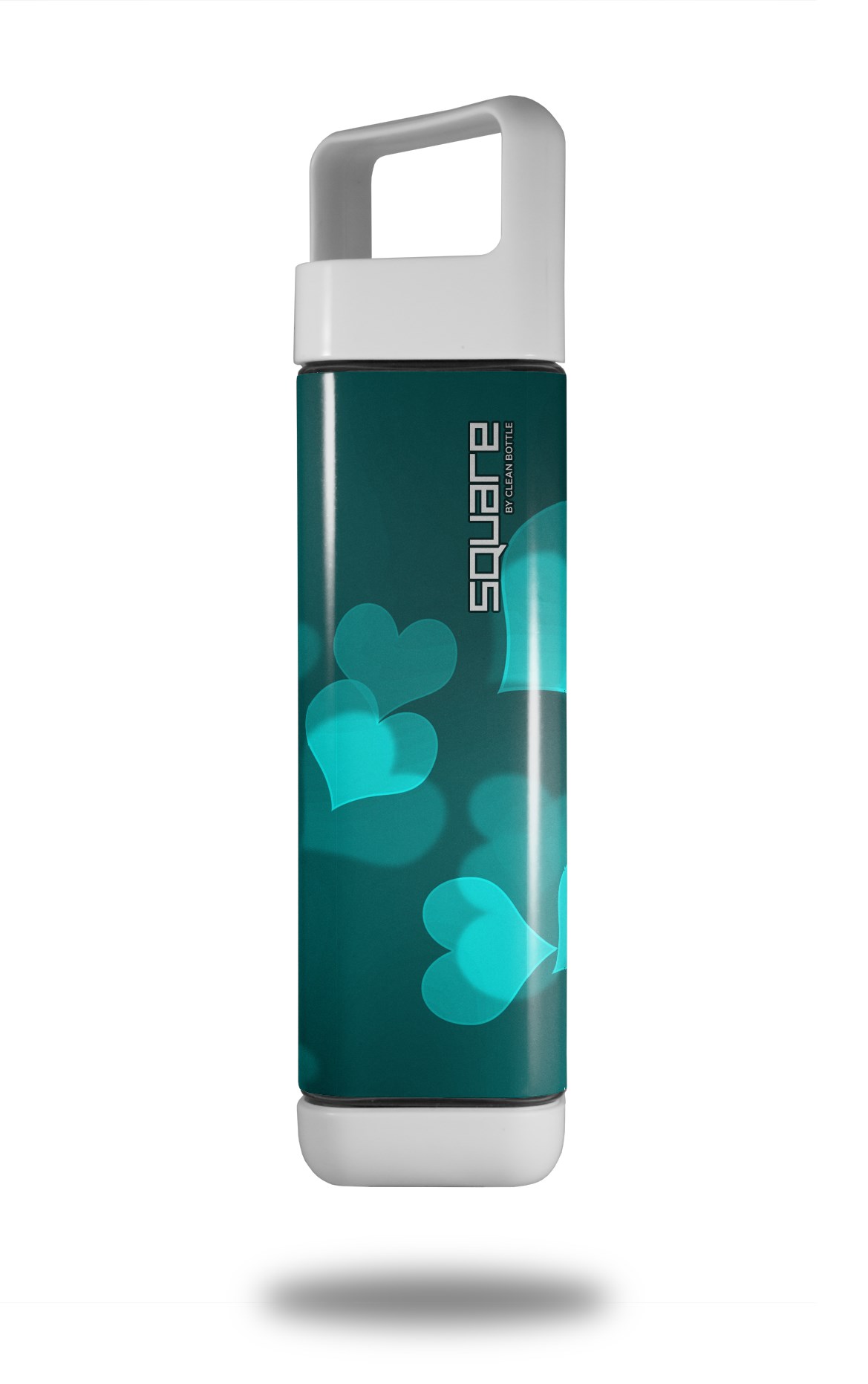 Skin Decal Wrap for Clean Bottle Square Titan Plastic 25oz Bokeh Hearts Neon Teal (BOTTLE NOT INCLUDED)