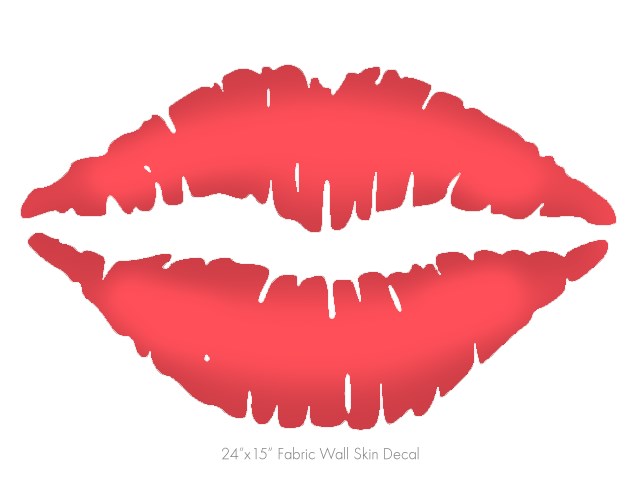 Solid Color Coral - Kissing Lips Fabric Wall Skin Decal measures 24x15 inches
