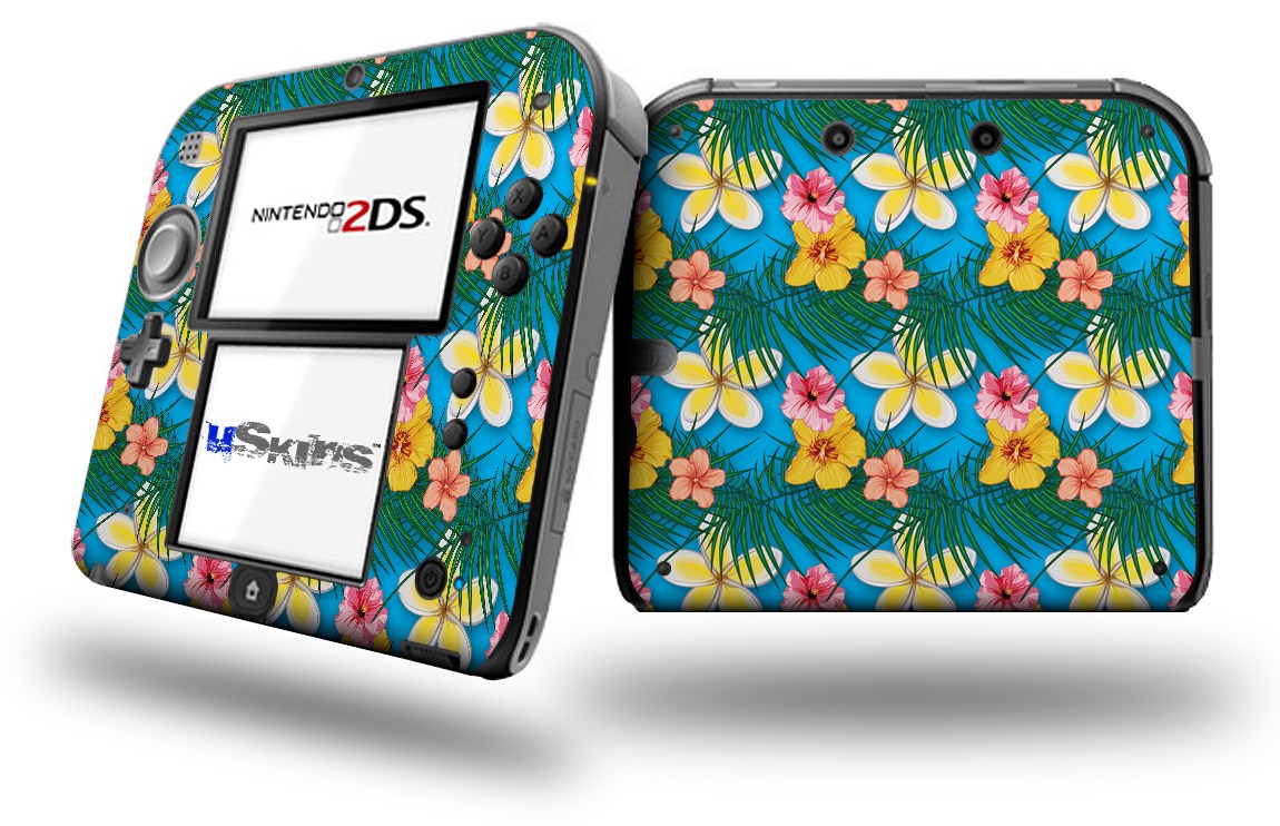 Beach Flowers 02 Blue Medium - Decal Style Vinyl Skin fits Nintendo 2DS - 2DS NOT INCLUDED