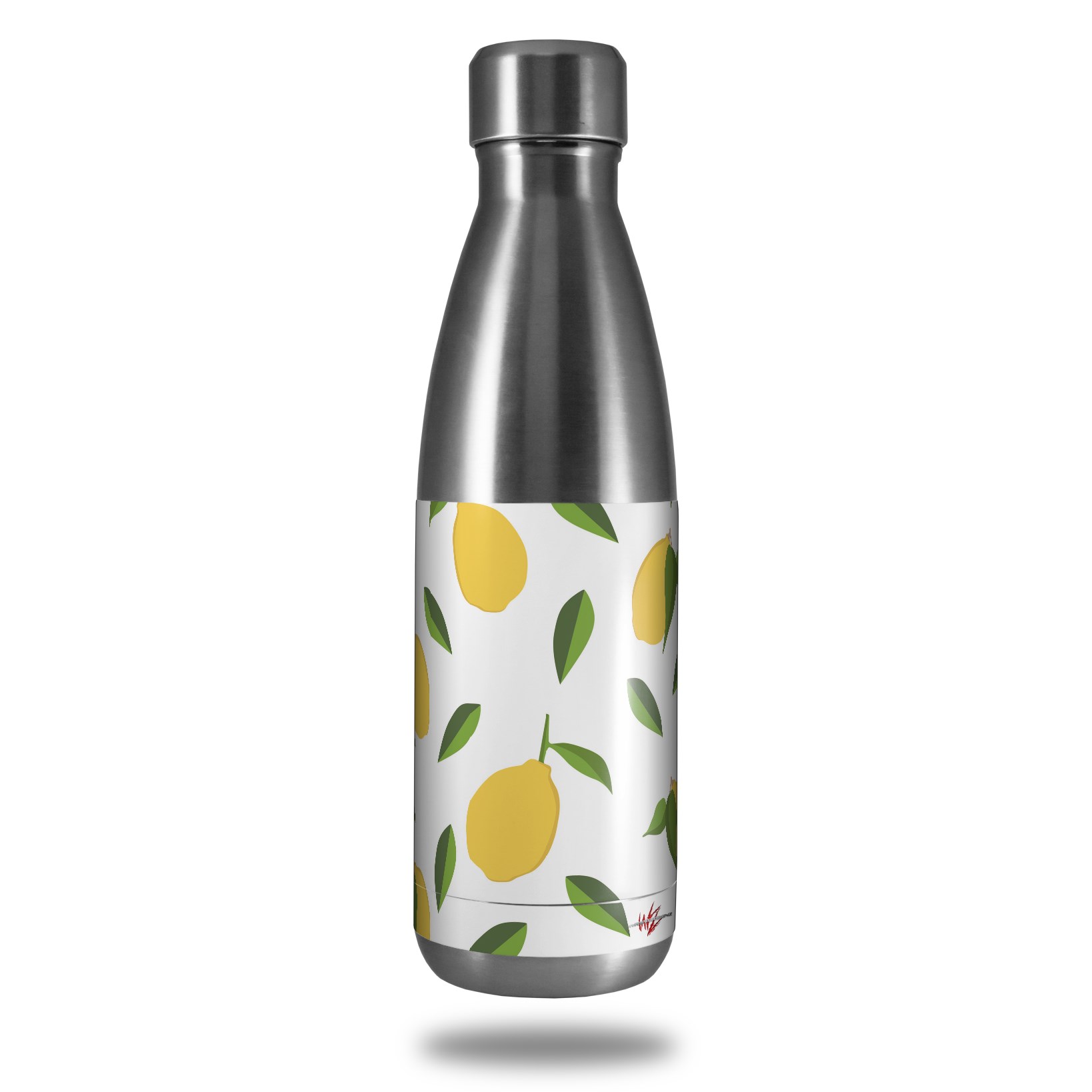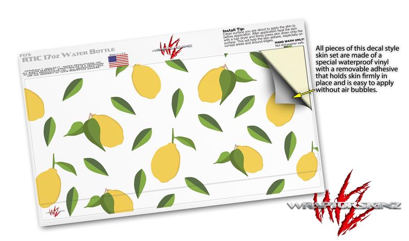 Skin Decal Wrap for RTIC Water Bottle 17oz Lemon Leaves White (BOTTLE NOT INCLUDED)