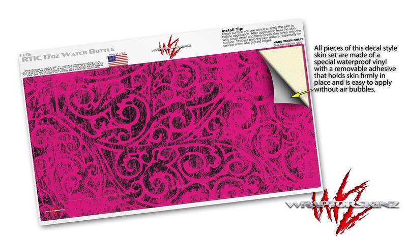 Skin Decal Wrap for RTIC Water Bottle 17oz Folder Doodles Fuchsia (BOTTLE NOT INCLUDED)