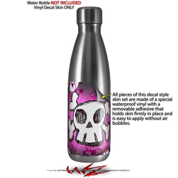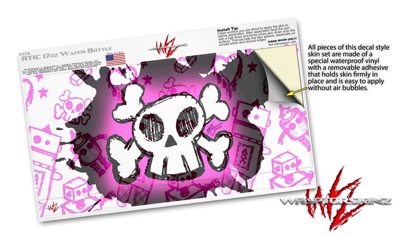 Skin Decal Wrap for RTIC Water Bottle 17oz Cartoon Skull Pink (BOTTLE NOT INCLUDED)