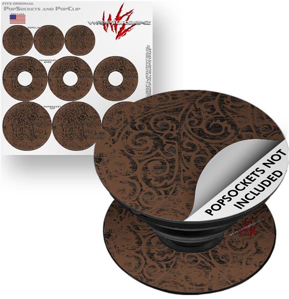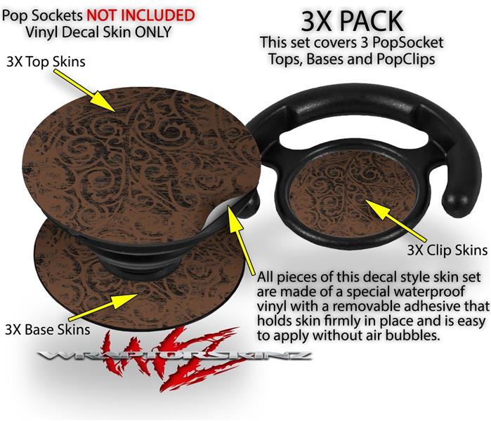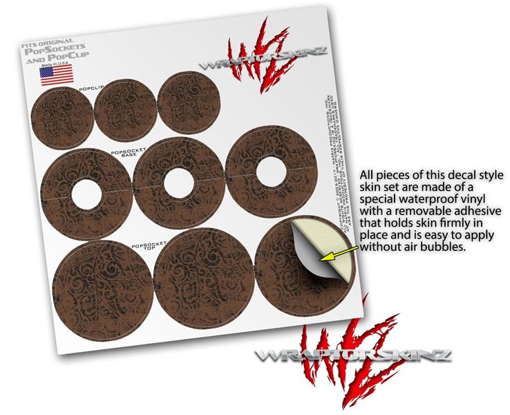 Decal Style Vinyl Skin Wrap 3 Pack for PopSockets Folder Doodles Chocolate Brown (POPSOCKET NOT INCLUDED)