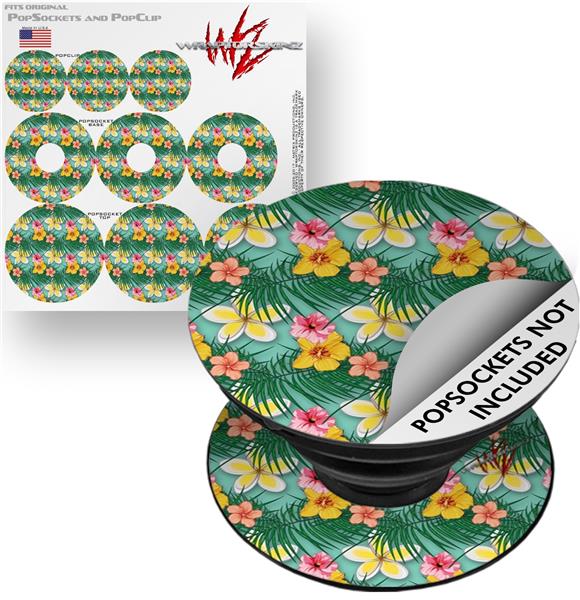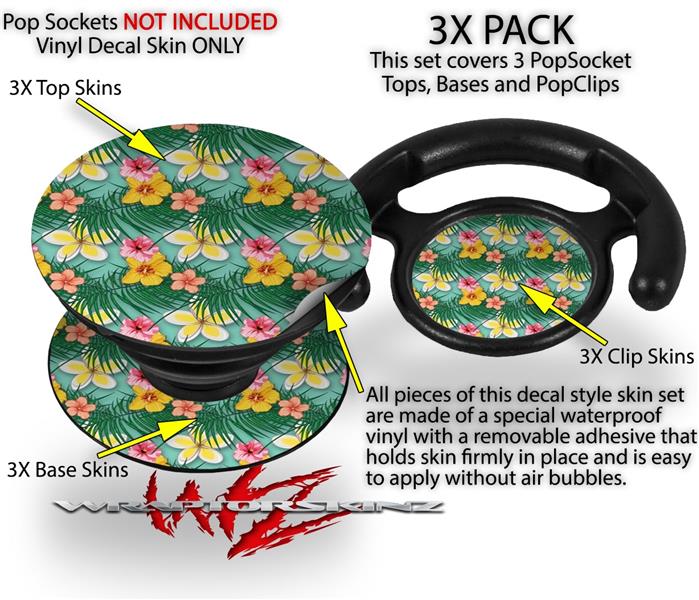 Decal Style Vinyl Skin Wrap 3 Pack for PopSockets Beach Flowers 02 Seafoam Green (POPSOCKET NOT INCLUDED)